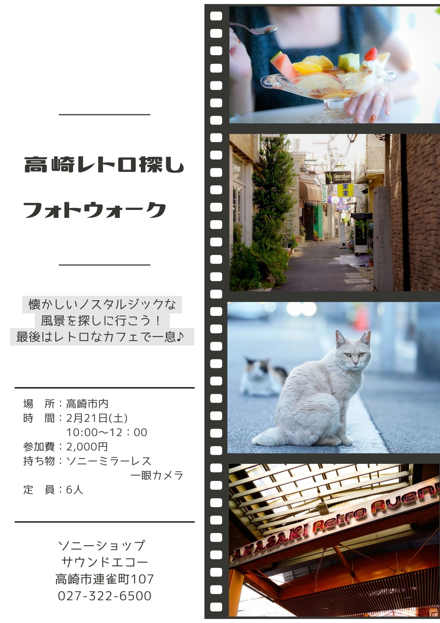こんにちは!サウンドエコー須藤です(^^)/ 高崎の街に残るノスタルジックな風景を探しながら撮影してみよう!最後はレトロなカフェでひと休み。