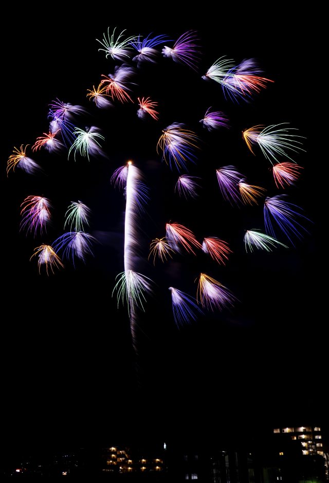 - 花火がある程度開いたら、花火にピントをあわせ、シャッターから指を離す