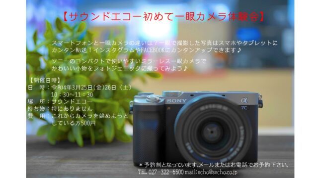 そして、写真展期間中に「ソニーミラーレス一眼カメラ体験会」が3月25日(金)26日(土)10:30~11:30にあります。