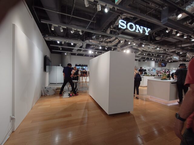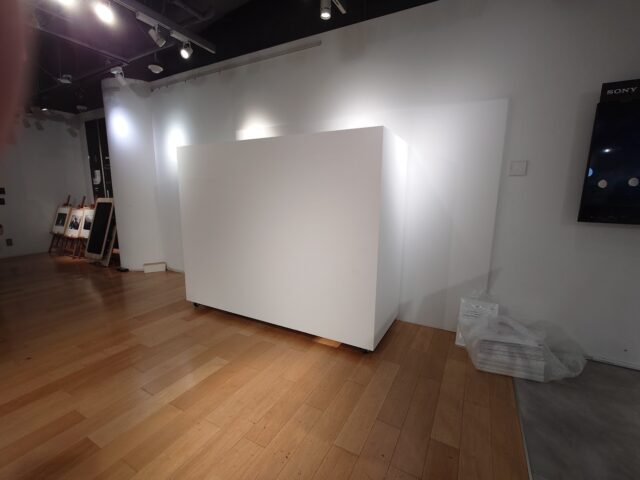 展示の様子を少し。前日夕方にソニーストア銀座に到着。真っ白な壁。