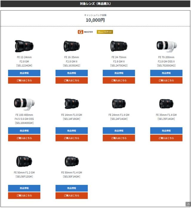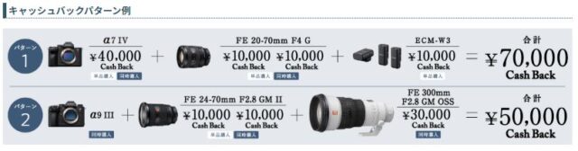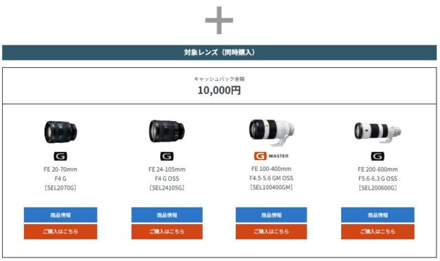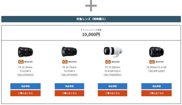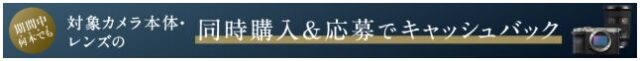 その他対象カメラ本体をご購入、プラス対象レンズを同時購入でレンズの最大3万円のキャッシュバックが行われます!