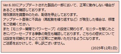 Ver.6.00にアップデートされた製品の一部において、正常に動作しない場合があることを確認しております。