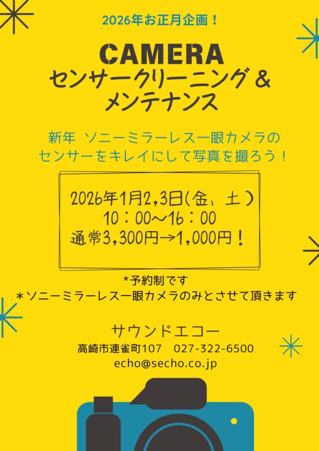 2026年新春特別企画1月2日㈮3日㈯「αCAMERA センサークリーニング&メンテナンス」を¥1,000税込でやります![]()