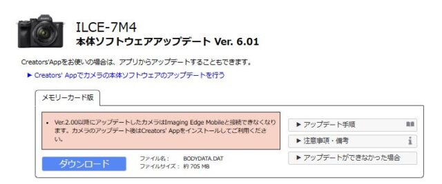 Ver.6.00が一時停止していた「α7Ⅳ」のソフトウエアアップデートVer.6.01が再開されました。