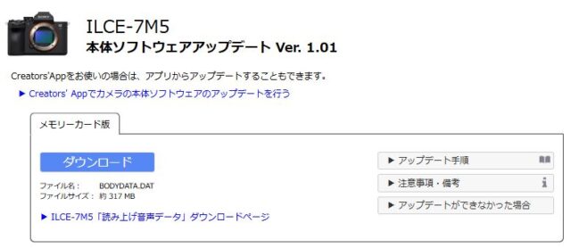 【アップデート】α7Ⅴ(ILCE-7M5)本体ソフトウエアアップデート情報がありました