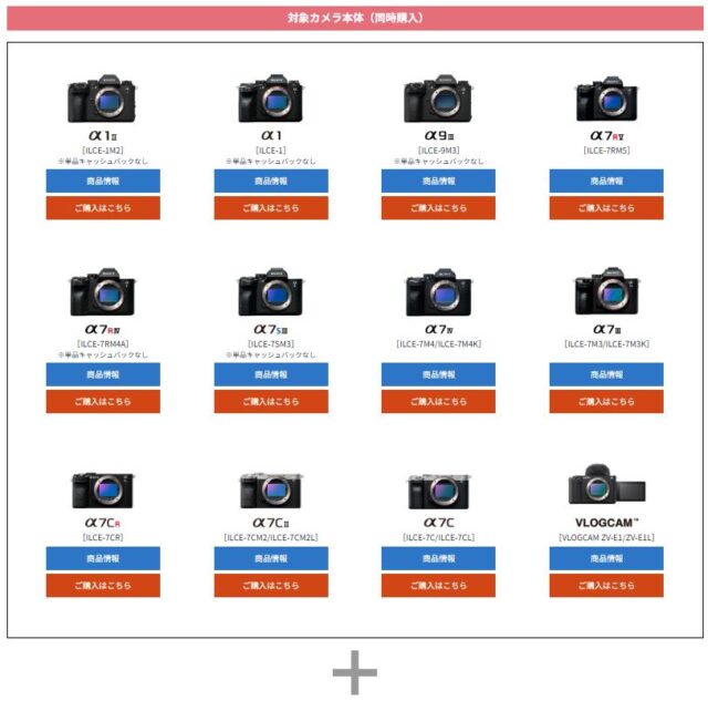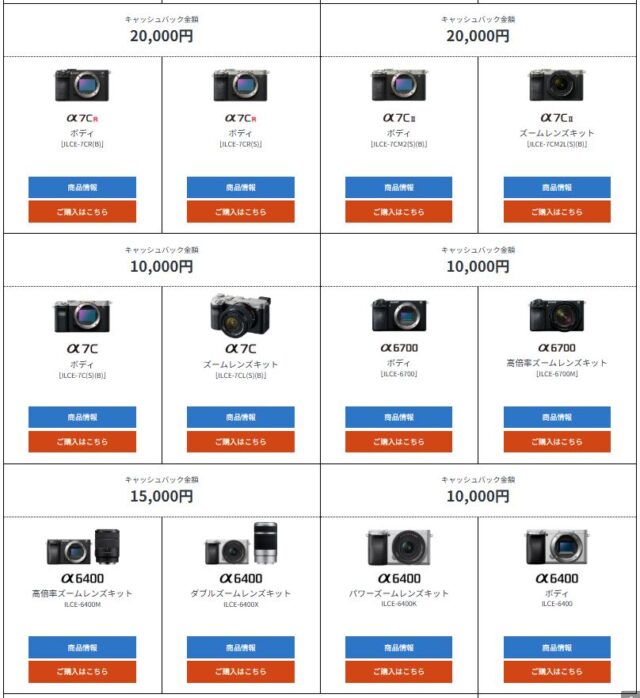 今回は「α7CⅡ」が前回1万円のキャッシュバックだったのに対し、2万円になっています!