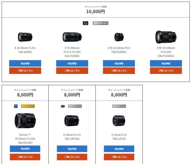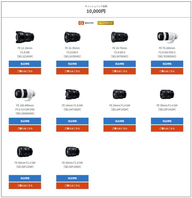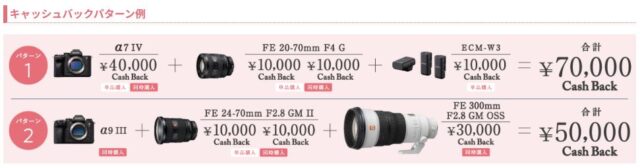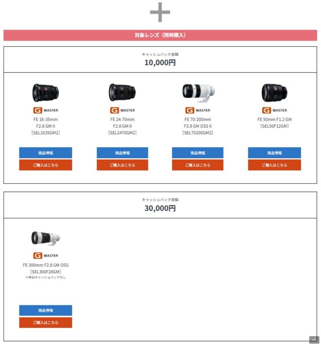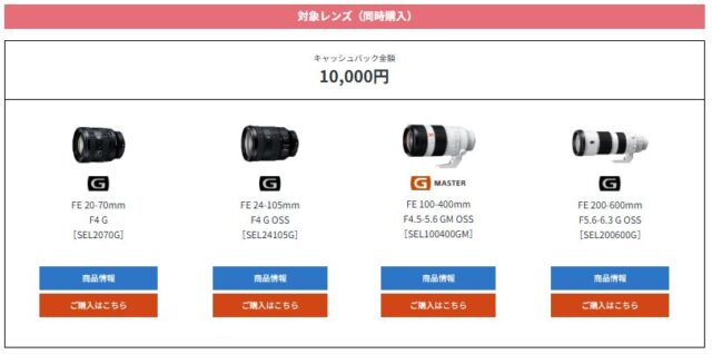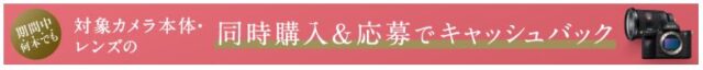 その他対象カメラ本体をご購入、プラス対象レンズを同時購入でレンズの最大3万円のキャッシュバックが行われます!