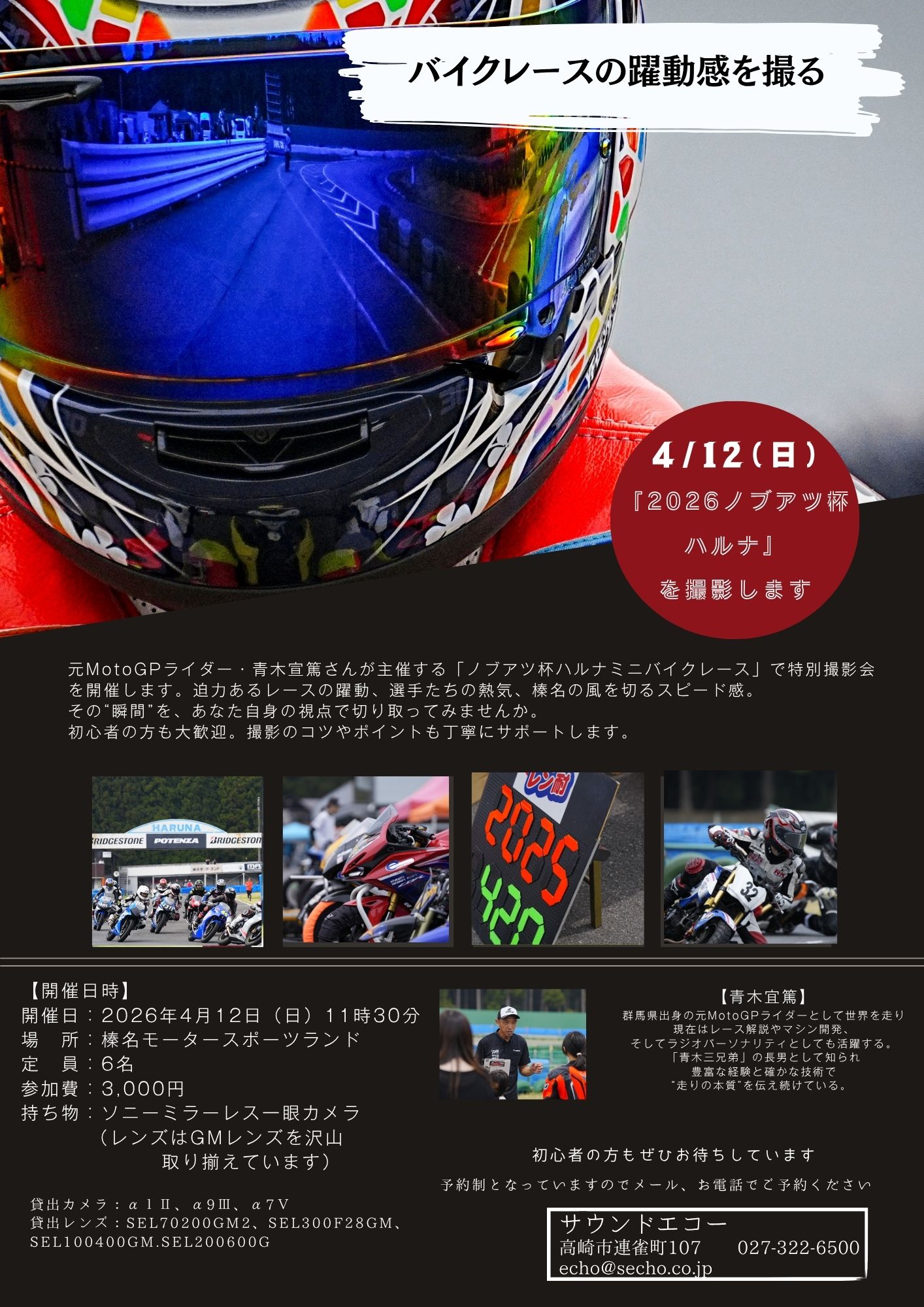 バイクレースの躍動感を撮る~2026ノブアツ杯ハルナ~ バイク好きな人も他社カメラの方もソニーのカメラで撮ってみたい人大歓迎~!!