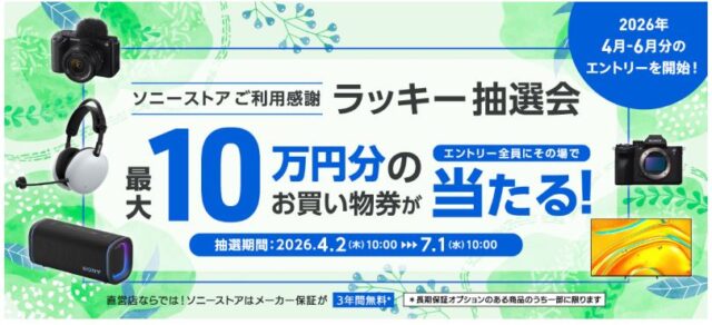 大好評のソニーストアご利用感謝イベント「ソニーストアラッキー抽選会」2026年4月~6月開催中!