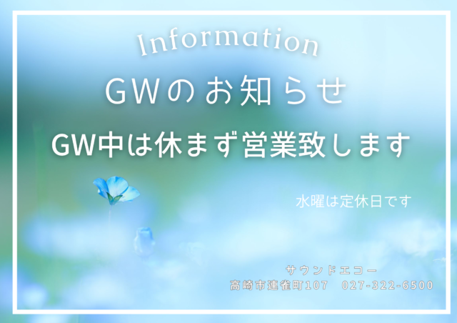 尚、4月29日(水)、5月6日(水)は定休日になります。